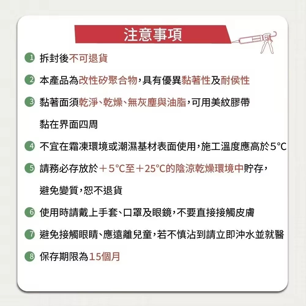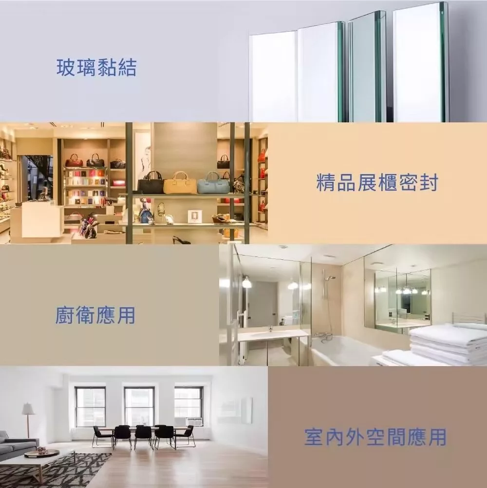 高黏著力:適用於玻璃、金屬、塑膠、木材、磚石等多種材質